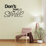 Stenska nalepka “Don’t Forget to Smile” je popoln dodatek za vsak prostor, ki ga želite popestriti in napolniti s pozitivno energijo. S preprostim, a močnim sporočilom vas bo ta nalepka vsak dan opomnila, da ne pozabite na nasmeh, ne glede na situacijo. Nalepka je enostavna za namestitev in primerna za različne površine, kot so stene, vrata ali pohištvo. Izdelana je iz visokokakovostnega vinila, ki zagotavlja dolgo obstojnost in enostavno odstranjevanje brez poškodb na površini. Idealna je za dnevne sobe, spalnice, otroške sobe ali pisarne.